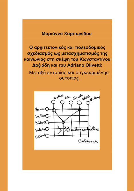 Μαριάννα Χαριτωνίδου, Ο αρχιτεκτονικός και πολεοδομικός σχεδιασμός ως μετασχηματισμός της κοινωνίας στη σκέψη του Κωνσταντίνου Δοξιάδη και του Adriano Olivetti: Μεταξύ εντοπίας και συγκεκριμένης ουτοπίας (Αθήνα, 2024). ISBN 9786180056112. 124 σελίδες