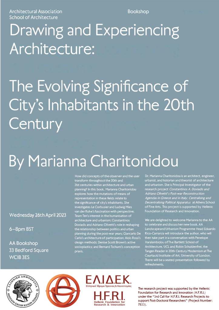 A book launch event of Dr. Ing. Marianna Charitonidou’s book Architectural Drawings as Investigating Devices: Architecture’s Changing Scope in the 20th Century took place at the Goethe-Institut Amphitheater in Athens on Monday 22 January 22 at 18:00.