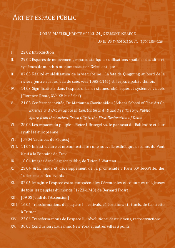 21 March 2024 Marianna Charitonidou, “Ekistics and Urban Space in Constantinos A. Doxiadis’s Theory: Public Space from the Ancient Greek City to the First Declaration of Delos”, lecture delivered at the University of Lausanne in the framework of the MA Course “Public Space in/as/around Art” coordinated by Dr. Desmond Kraege